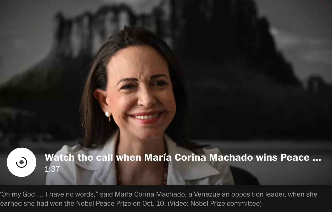 Maria Corina Machado obtiene el Nobel por su contribucion a la libertad